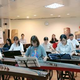 1.初級:抹音練習、拍子練習 2.中級:節奏、配伴奏練習 | 初級:世上只有媽媽好、阿里郎、沙里紅巴 中級:白弧、風箏誤 |